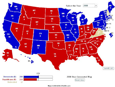 I primi effetti sono per il Michigan che con un sondaggio Rasmussen con Obama +6 mi dice di assegnarla provvisoriamente ai DEM. Molti siti danno l’Ohio toss-up, io non sono d’accordo, o meglio, l’Ohio è in bilico, ma non più del Michigan; io li assegno entrambi.