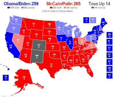 Bene bene, McCain regge ottimamente dopo la convention. Oggi i 4 sondaggi sono molto buoni: Pennsylvania pari, Colorado +2, Ohio +3, Florida +5 e Virginia, unica nota dolente, a 0!