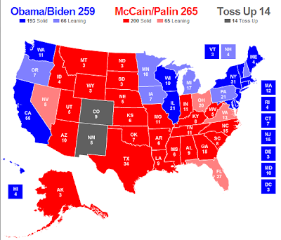 Tutto ciò porterà un indubbio vantaggio a McCain; lui e la Palin potranno concentrarsi sugli stati più importanti come Colorado, Pennsylvania e Michigan. Vincere uno di questi porterà il duo repubblicano alla Casa Bianca.