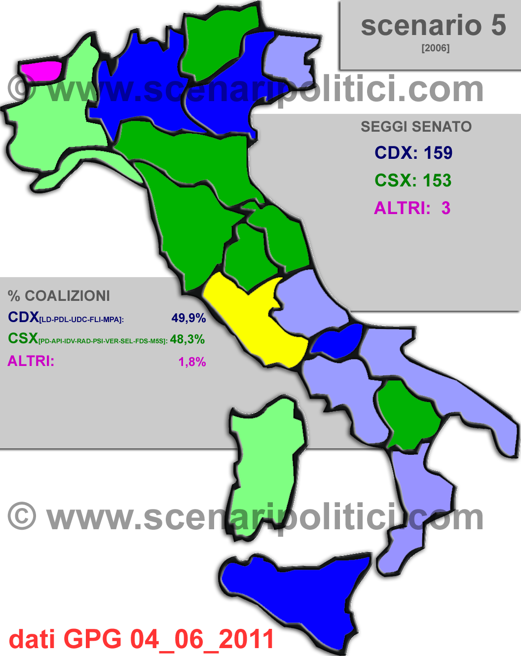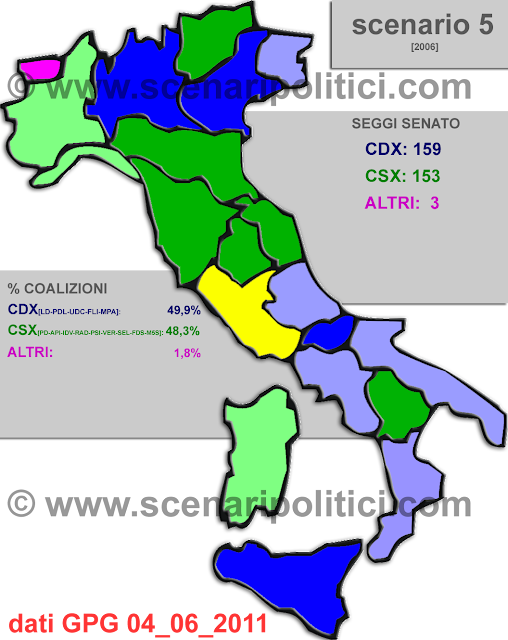 In alcune regioni il vantaggio è minimo, soprattutto nel Lazio (qui assegnato al CSX), vantaggio minimo per il CDX in Campania, Puglia, Abruzzo, Calabria e Friuli Venezia Giulia. Idem per il CSX in Piemonte, Liguria, Sardegna. Possibili quindi sorprese.