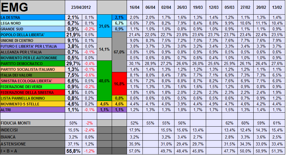 Come ogni lunedì EMG pubblica, nel Tg di LA7, un nuovo sondaggio.