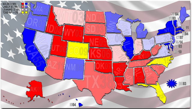 Ottimo momento per Obama che allunga nel nazionale e migliora decisamente i sondaggi statali. Riporta di prepotenza 3 stati nella propria colonna: Virginia, Ohio e Michigan (quest’ultimo stato diretto nei Likely).