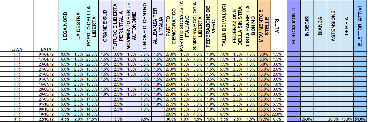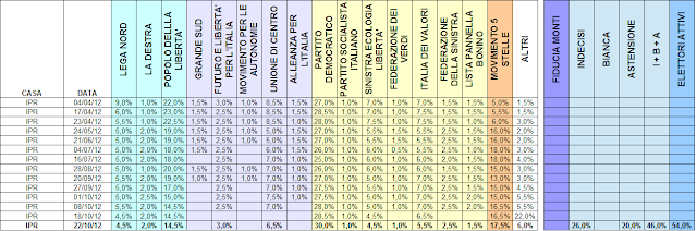 Sondaggio IPR per il Tg3. Risale a lunedì. Grazie ad Antonio per la segnalazione nei commenti, sarebbe andato perso!
