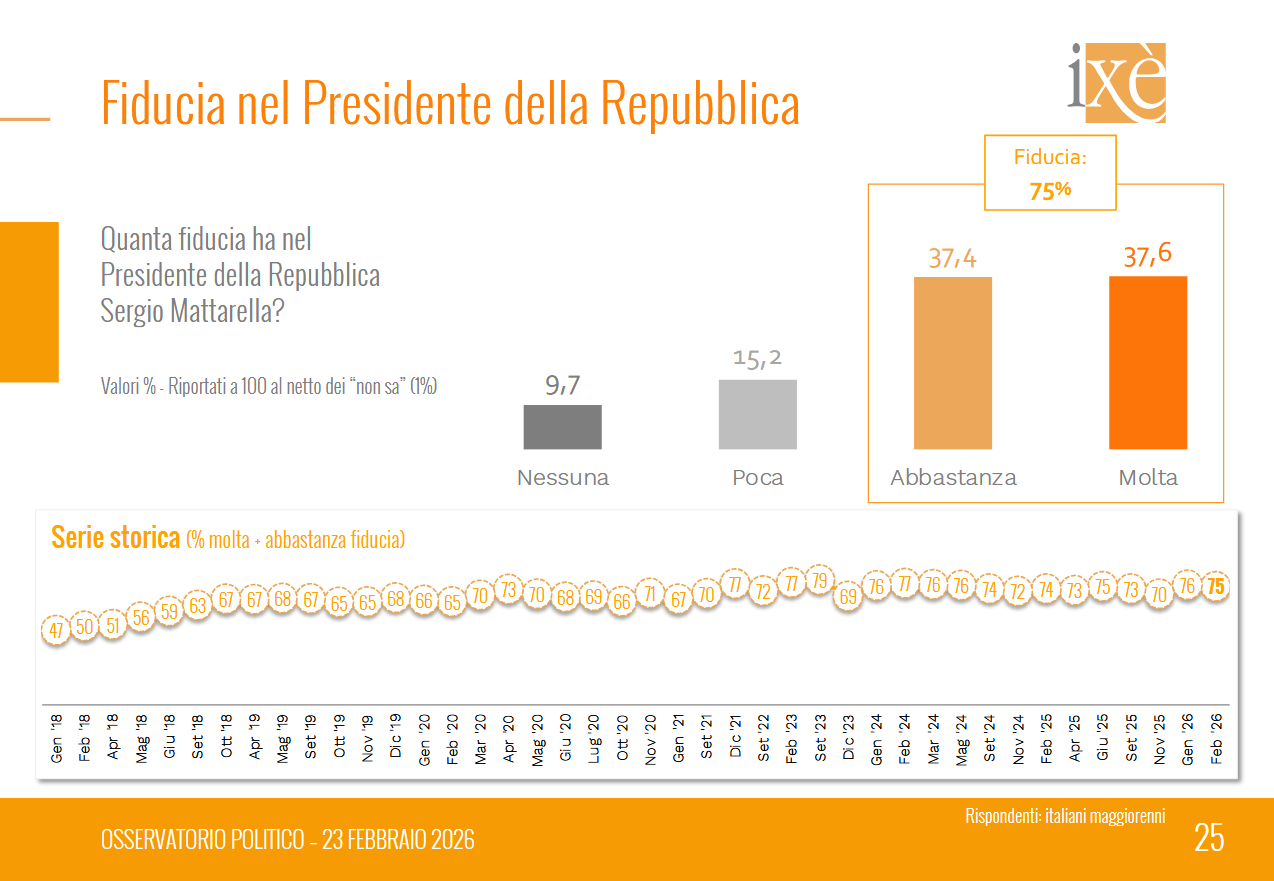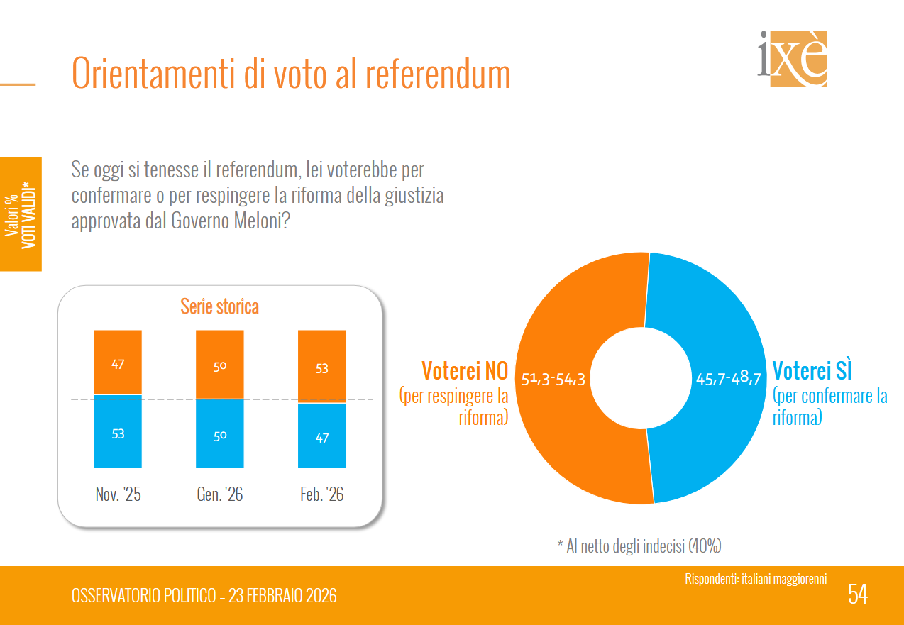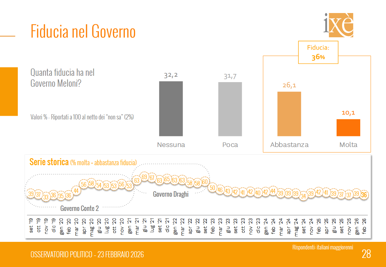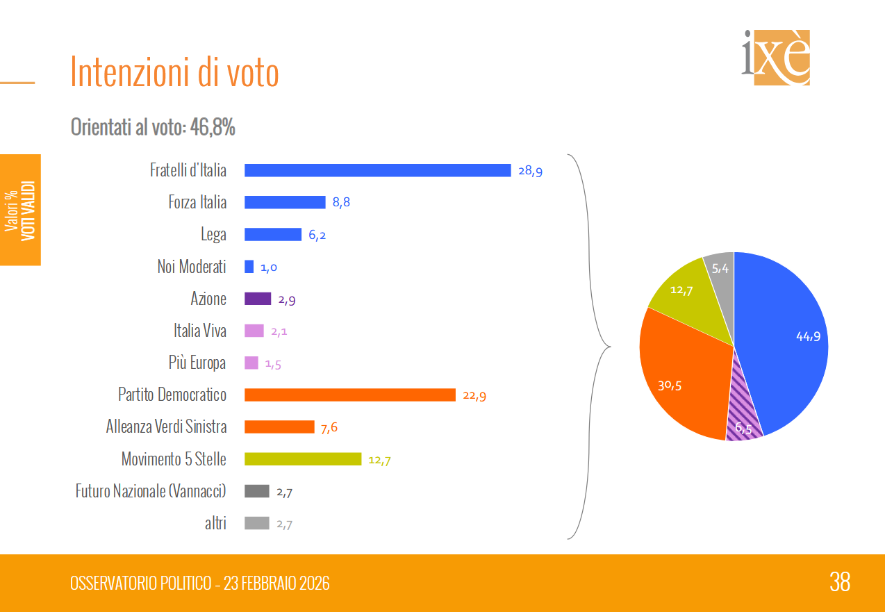 L’Istituto Ixè ha pubblicato il 23 febbraio 2026 una nuova edizione del suo Osservatorio Politico Nazionale.