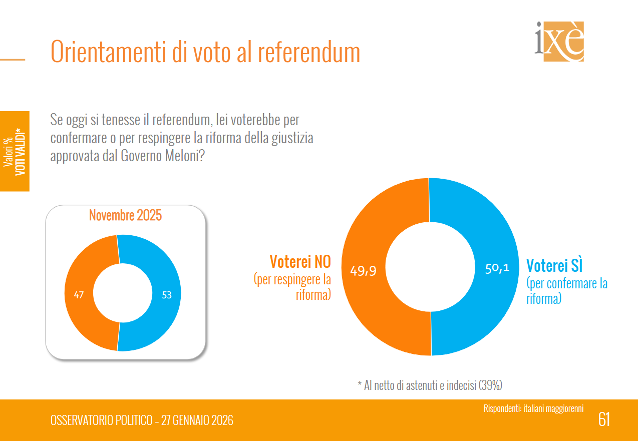 L’Istituto Ixè ha pubblicato il 27 gennaio 2026 una nuova edizione del suo Osservatorio Politico Nazionale.