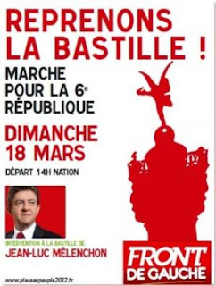 Nei sondaggi il massone rosso (1) oscilla tra il 12 ed il 15%, ha ormai stabilmente superato Bayrou relegato al quinto posto e lotta voto a voto con Marine Le Pen per la terza piazza in un curioso derby degli opposti estremismi con in palio la medaglia di bronzo. Paradossalmente però il successo di Mélenchon rischia di aiutare Sarkozy e di danneggiare Hollande.