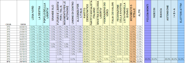 Altro sondaggio IPR, questa volta per Piazzapulita, di ieri.