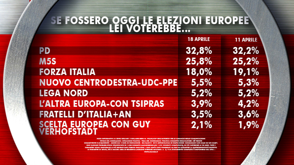 Censite sia le intenzioni di voto per le Politiche che per le Europee.