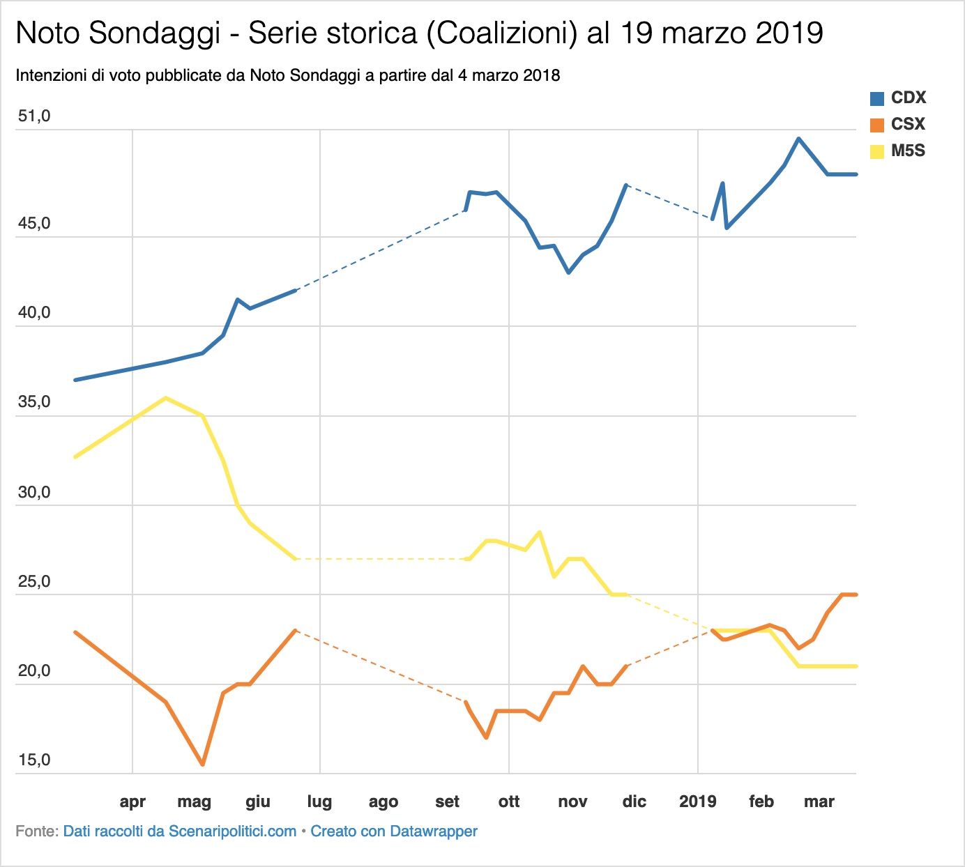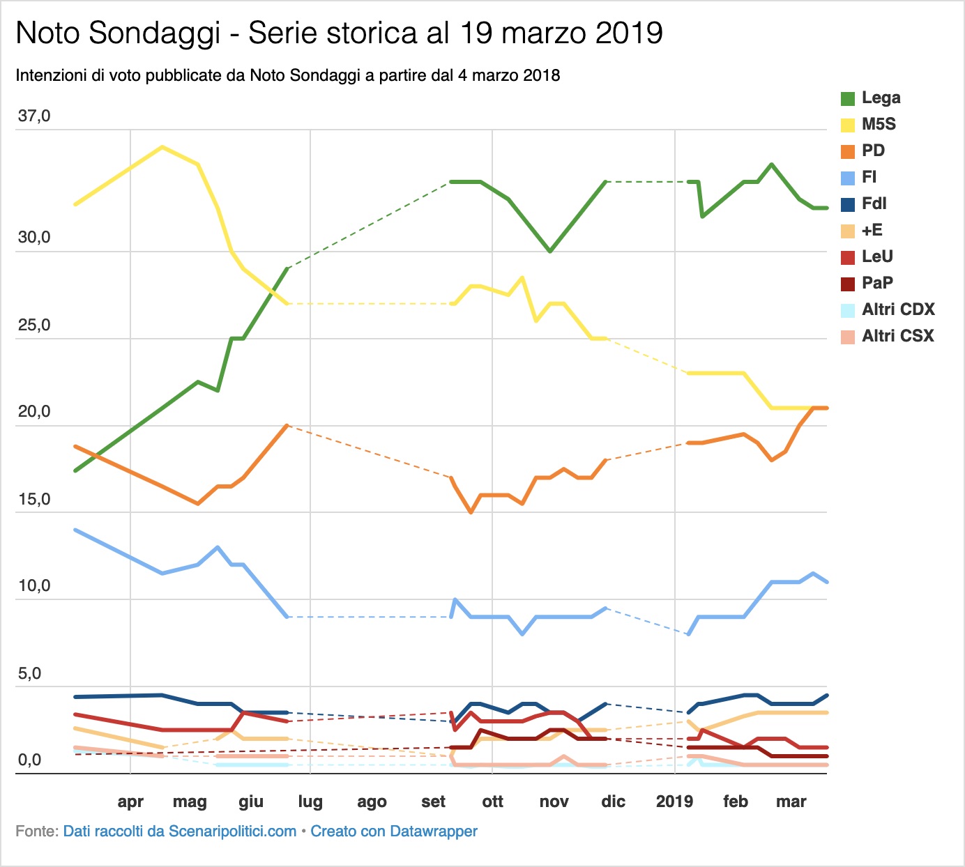 Sondaggio Noto 19 marzo 2019: Europee 2019